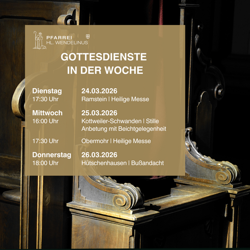 Mittwoch, 25.03.2026 Uhrzeit: 16:00 - 17:00 Kirche St. Elisabeth, Kottweiler-SchwandenAndacht