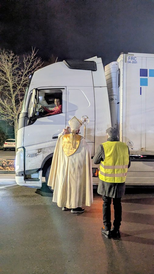 Die Tüten enthielten einen „echten“ Schoko-Nikolaus vom Bonifatiuswerk, eine Mandarine, Nüsse sowie die Nikolauslegende in mehreren Sprachen. Mit dieser Geste wurde zum wiederholten Mal ein Zeichen der Wertschätzung für eine Berufsgruppe gesetzt, die oft unter schwierigen Bedingungen arbeitet und im Alltag wenig Anerkennung erfährt. Die Aktion fand in diesem Jahr bereits zum dritten Mal statt und ist Ausdruck gelebter Nächstenliebe und Solidarität – mitten im Advent und direkt dort, wo Menschen unterwegs sind.